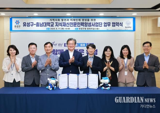 가디언뉴스 이은하 기자 | 대전 유성구는 11일 구청 중회의실에서 충남대학교 지식재산전문인력양성사업단과 관학협력을 위한 업무협약(MOU)을 체결했다.