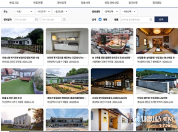 가디언뉴스 백승진 기자 | 정부는 한국부동산원과 함께 국민이 전국 빈집 현황을 쉽게 확인하고 활용 방안을 공유할 수 있도록 3월 12일부터 ‘빈집애(愛) 누리집’을 개편·운영한다.