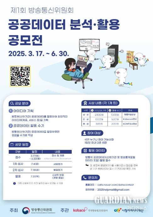 가디언뉴스 백승진 기자 | 방송‧통신 분야 공공데이터 이용 활성화를 위한 대국민 공모전이 처음 개최된다.