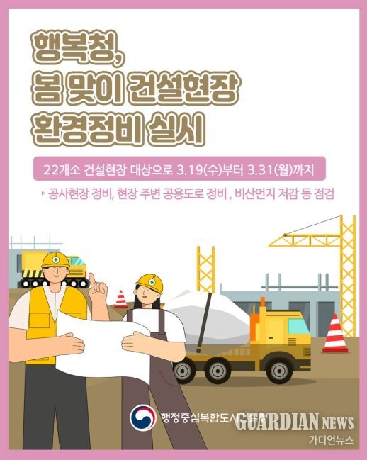 가디언뉴스 백승진 기자 | 행복청은 다가오는 봄을 맞아 3월 19일부터 31일까지 행복청 발주·인허가 건설 현장 22개소를 대상으로 환경정비를 실시한다.
