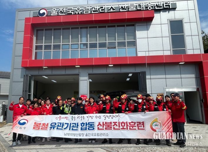 가디언뉴스 백승진 기자 | 남부지방산림청 울진국유림관리소에서는 산불진화 능력을 향상시키고 산불유관기관과의 협력 체제를 구축함으로서 지역 산불에 대한 공통 대처에 기틀을 다지고자 3월 21일 울진군청, 울진소방서, 울진경찰서 30여명이 참여한 가운데 울진국유림관리소 주차장에서 유관기관 합동으로 산불진화 훈련을 실시했다.