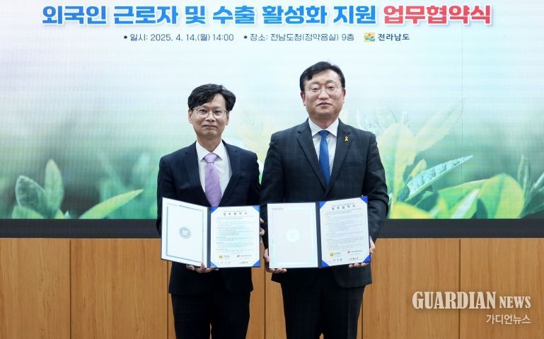 가디언뉴스 김기홍 기자 | 전라남도는 14일 도청에서 전남지방우정청과 외국인 근로자, 다문화가족, 수출 중소기업을 대상으로 국제특급우편(EMS) 요금 지원 업무협약을 했다.