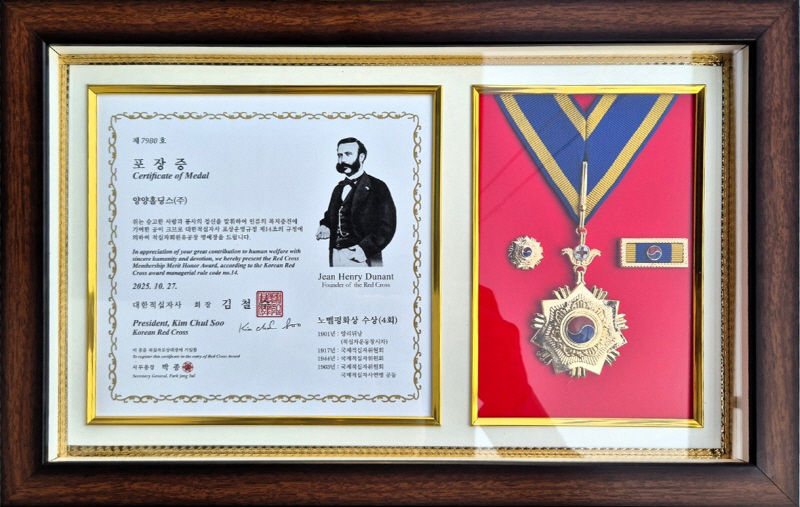 가디언뉴스 백승진 기자 | 양양홀딩스(주)의 현희용 회장이 지난 10월 27일, 대한적십자사로부터 포장증을 수상하며 지역사회와 인류애를 위한 지속적인 헌신을 인정받았다.