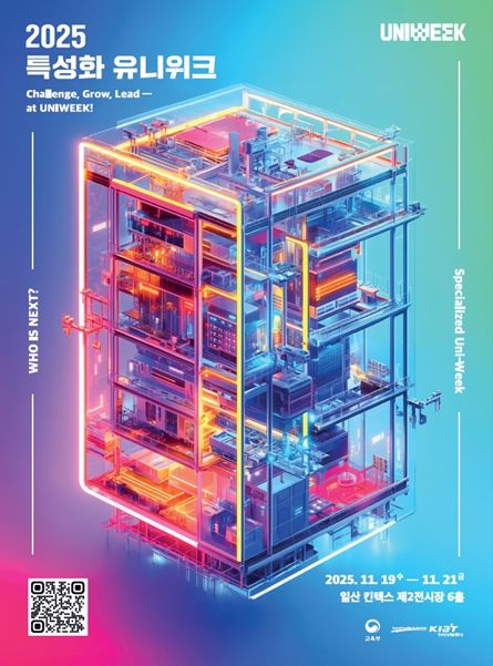 가디언뉴스 백승진 기자 | 교육부와 한국산업기술진흥원(원장 민병주)은 11월 19일부터 11월 21일까지 일산 킨텍스에서 첨단산업 특성화대학 학생들을 위한 축제인 ‘유니위크(Uni-Week)’를 개최한다. 이에 앞서 11월 18일부터 특성화대학 반도체·이차전지 분야 경진대회 결선도 시작된다.
