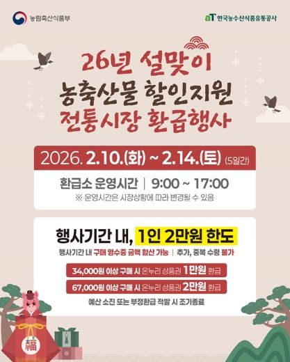 가디언뉴스 허요셉 기자 | ■ 2026년 설맞이 농축산물 할인지원 전통시장 환급행사