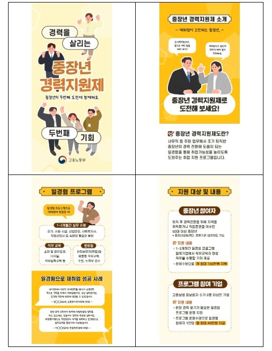 '중장년 경력지원제'는 사무직 등 주된 업무에서 퇴직 후 경력전환을 위해 자격을 취득했거나 직업 훈련을 이수한 50대 중장년에게 ‘경력전환형 일경험’ 기회를 제공하는 사업으로, ’25년 시범 시행 후 ’26년에 2,000명 규모로 추진된다.