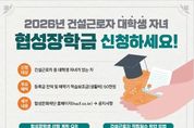 가디언뉴스 김기홍 기자 | 건설근로자공제회(이사장 직무대행 권혁태)와 협성문화재단(이사장 박석귀)은 건설근로자의 대학생 자녀 학업 지원을 위해 ‘2026년 신규 협성장학생’을 선발한다. 지원대상은 건설근로자공제회에 등록된 건설근로자로 총 적립일수가 600일 이상이고, 2025년도 근로내역은 최소 100일이다. 건설근로자의 자녀 가운데 국내 4년제 대학 신입생과 2026년 기준 2~3학년 재학생을 대상으로 장학생을 모집한다. 선발 인원은 20명 내외다. 제출서류, 심사기준은 협성문화재단 홈페이지 내 공지사항을 통해 확인할 수 있다. 접수기간은 오는 12월 15일부터 내년 1월 5일까지이며, 협성문화재단에 제출서류를 등기우편으로 제출해야 한다. 서류합격자는 2026년 1월 26일 발표되며, 면접은 2월 2일부터 6일까지 진행된다. 최종 합격자는 2월 9일 재단 홈페이지에 게시되고, 2월 12일 장학증서 수여식이 열릴 예정이다. 장학생에게는 등록금 전액과 함께 매 학기 50만원의 학습보조금이 지원된다. 또한 인문학 강의, 독서 프로그램, 해외 탐방 및 봉사 활동 등 다양한 장학 프로그램 참여 기회도 제공된다. 장학생