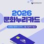 가디언뉴스 허요셉 기자 | ■ 문화누리 2026년 통합문화이용권 150,000원 사회적 약자인 취약계층의 문화향유 기회를 확대하기 위해 올해 '통합문화이용권(문화누리카드)'의 연간 지원금을 전년 대비 1만 원 인상했습니다. - 청소년(13~18세)과 고령기에 진입한 사람(60~64세)에게는 지원금 1만 원을 추가한 총 16만 원 지급 · 지원대상 6세 이상 기초생활수급자 및 차상위계층 (2020.12.31. 이전 출생자) · 신청기간 2026년 2월 2일~11월 30일 (발급받은 카드는 12월 31일까지 사용) · 발급방법 전국 주민센터와 '문화누리카드' 누리집, 모바일 앱을 통해 신청·발급 · 사용처 전국 3만 5000여 개의 문화예술, 국내 여행, 체육 분야 가맹점에서 이용 (자세한 내용은 '문화누리카드' 누리집 모바일 앱 확인)