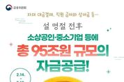 가디언뉴스 허요셉 기자 | 자재 대금결제, 직원 급여와 상여금 등… 설 명절 전후 소상공인·중소기업 등에 총 95조 원 규모의 자금공급! (2.14.~2.18.) - 중소·중견기업 ■ 특별대출, 보증 · 지원기간: ~3.5. · 신청방법: 산업은행, 기업은행, 신용보증기금 지점 상담 - 중소기업·소상공인 ■ 거래 기여도, 신용등급에 따라 은행권 금리우대 대출 · 지원기간: ~3.13. *4대 시중은행 기준(타 은행은 보도자료 참고) · 신청방법: 은행 영업점 방문→설 명절 특별자금지원 상담 - 전통시장 상인 ■ 명절 자금 지원 · 내용 : 연 4.5% 이내 금리 / 최대 1000만 원 대출 · 지원기간: ~2.13. · 신청방법: 우수시장(기초지자체 추천) 소속 상인이 상인회에 신청