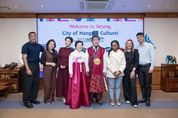 가디언뉴스 허요셉 기자 | 5개국 주요 미디어 매체 기자로 구성된 외신 기자단이 1박 2일 일정으로 한글문화도시 세종시를 찾았다. 세종특별자치시는 9일 한글의 독창성과 다양한 한글문화를 해외 각국에 알리기 위해 외신 기자단이 우리시를 방문했다고 밝혔다. 외신 기자단은 아랍에미리트와 아르헨티나, 남아프리카공화국, 베트남, 카자흐스탄 등 5개국 국영매체 또는 주요 방송사·일간지 소속 기자 6명으로 구성됐다. 이날 이들은 시청에서 세종시에 대한 소개를 경청하고, 홍윤표 국어학자(전 연세대 교수)로부터 한글 역사, 가치 등에 대한 설명을 들었다. 이어 박영국 세종시문화관광재단 대표이사가 9일부터 11일까지 개최 중인 세종한글축제의 기획의도와 주요 프로그램 등을 설명했다. 이후에는 최민호 시장과 외신 기자단이 만나 세계적 열풍을 불러일으키고 있는 한글의 미래 가치와 세계화, 한글문화도시 세종시의 비전 등에 대한 심도있는 대화를 나눴다. 이날 전통한복을 입고, 갓을 쓰고 등장한 최민호 시장은 전세계적으로 인기를 끌고 있는 ‘케이팝 데몬 헌터스’ 속 등장인물들의 의상을 생생하게 보여주며