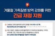 가디언뉴스 허요셉 기자 | 겨울철 가축질병 방역 강화를 위한 긴급 재정 지원 - 고병원성 조류인플루엔자 방역 강화를 위해 9개 시·도*에 재난안전특교세 30억 원을 지원 *광주, 세종, 경기, 충북, 충남, 전북, 전남, 경북, 경남 - 이번 지원은 고병원성 조류인플루엔자가 지속적으로 발생하는 지역의 소독약품 구입, 거점소독시설 및 이동통제초소 운영 등 보다 강화된 현장 방역활동을 지원하기 위해 결정 - 행안부는 지난해 11월 24일에 14개 시·도에 고병원성 조류인플루엔자 확산 방지를 위한 재난안전특교세 50억 원을 지원했으며 이번까지 포함하면 총 80억 원을 지원