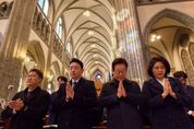 가디언뉴스 김재한 기자 | 이재명 대통령과 김혜경 여사가 25일 서울 중구 명동대성당에서 열린 성탄 대축일 미사에서 기도를 하고 있다.