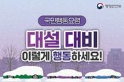 가디언뉴스 허요셉 기자 | ■ 대설 짧은 시간에 급격히 눈이 쌓이게 되므로 차량·산간 고립, 교통사고, 쌓인 눈으로 인한 시설물 붕괴 등의 피해가 발생될 수 있습니다. ※ 습기를 많이 머금은 습설의 경우 3~10배 무거워져 시설물 붕괴 등 피해 우려가 큼 겨울철에는 다음 사항을 숙지해 가족이나 이웃과 함께 피해를 예방할 수 있도록 미리 준비합니다. 대설 행동요령 ① 기상정보를 수시로 확인해 대설·습설에 대비 ※눈이 쌓이면 가급적 외출을 자제하고 대중교통 이용하기 대설행동요령 ② 내 집·점포 앞 눈은 내가 치워 낙상사고를 예방하고, 미끄럼 사고 대비 자전거, 전동킥보드 등 이용 금지 대설 행동요령 ③ 제설작업은 주간에 2인1조 이상, 안전 확보 후 실시하며, 심야제설, 지붕 올라가기 등 무리한 작업 금지 ※ 눈이 많이 쌓였을 경우 안전한 곳으로 신속히 대피 대설 행동요령 ④ 가로수, 노후 시설 등 붕괴·전도 위험구조물 접근금지 및 위험징후 포착 시 즉시 대피 후 신고 ※ 노후 축사, 임시천막, 비닐하우스 등은 미리 점검·보강 대설 행동요령 ⑤ 적설·결빙 도로에서는 안전거리 유