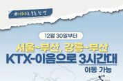 가디언뉴스 허요셉 기자 | 12월 30일부터 서울~부산, 강릉~부산 KTX-이음으로 3시간대 이동 가능 ■ 중앙선 운행 횟수 대폭 확대 청량리~부전 구간: 하루 총 6회→18회, 3배 증편 ■ 동해선 부전(부산)~강릉 운행 소요시간 3시간 54분으로, 기존 ITX-마음 운행(5시간 4분)대비 약 1시간 10분 단축