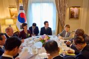 가디언뉴스 김재한 기자 | 유엔총회 참석을 계기로 방미 중인 이재명 대통령이 22일(현지시간) 첫 번째 일정으로 세계경제포럼(WEF) 의장인 블랙록의 래리 핑크 회장, GIP의 아데바요 오군레시 회장, 김용 전 세계은행 총재와 만났다. 이번 만남에선 인공지능과 에너지 전환, 인구 변화라는 인류의 세 가지 대전환 과제를 중심으로 논의가 이뤄졌으며, 동시에 한국과 글로벌 투자사 간 전략적 협력을 위한 공감대를 확인했다. 래리 핑크 회장은 AI와 탈탄소 전환은 반드시 함께 진행되는 것이 중요하고, 이는 전 세계가 함께 가야 할 문제라고 강조하면서 한국이 "아시아의 AI 수도(AI Capital in Asia)"가 될 수 있도록 글로벌 자본을 연계하여 적극 협력하겠다는 의지를 밝혔다. 이재명 대통령은 한국의 아시아태평양 AI 수도 실현을 위해 협력할 수 있게 되어 환영하며, 긴밀하고 지속적인 논의를 통해 이번 협력 관계를 실질적인 협력 성과로 이어지게끔 하자고 강조했다. 또한 래리 핑크 회장을 직접 한국에 초대하기도 했다. 래리 핑크 회장 일행은 이재명 대통령의 리더십으로 취임 이후에 대한민국 증시가