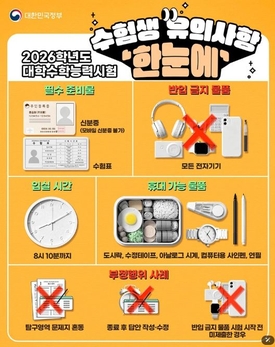 문화체육관광부 , 2026학년도 수능, 수험생 유의사항 '한눈에'