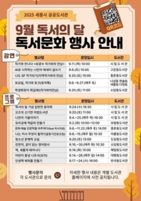 책 향기 가득한 9월, 세종시 도서관에서 만나요
