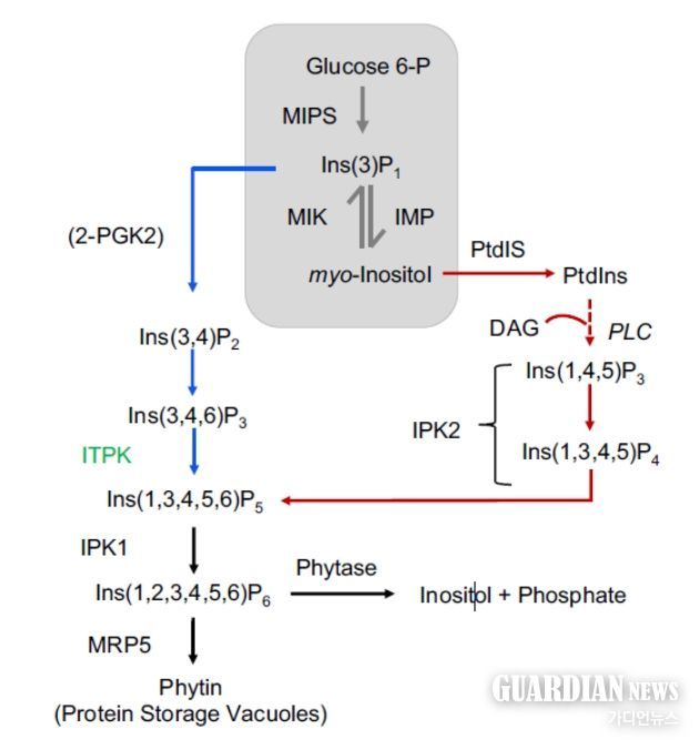 연구진은 피트산 대사에 관여하는 유전자(IPK1)를 편집해 피트산 함량을 줄인 콩에서 피트산이 어느 정도 줄었는지 확인하기로 했다. 이를 위해 생합성 대사 과정에서 생성하는 중간단계 피트산까지 분석할 수 있는 기술을 개발했다.