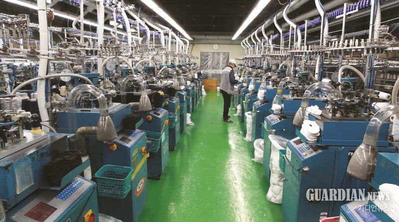 가디언뉴스 김기홍 기자 | 경기도 광주시 순암로 350에 위치한 ‘엔젤싹스’는 국내 최대 규모의 양말 공장으로, 30여 가지 이상의 다양한 양말을 직접 생산하고 있다. 길고 짧은 일반 양말부터 신발 밖으로 드러나지 않는 덧신까지, 다양한 제품군을 보유한 엔젤싹스는 고품질 국내산 실을 사용해 직접 생산하는 몇 안 되는 기업 중 하나다. 최근 많은 업체들이 비용 절감을 이유로 해외에서 양말을 수입해 라벨만 바꿔 판매하는 상황에서도, 엔젤싹스는 자체 기술 개발과 생산 방식을 고수하며 국내 섬유산업의 자존심을 지키고 있다.
