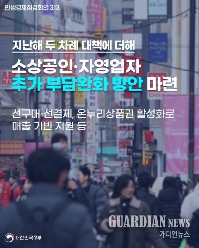 가디언뉴스 백승진 기자 | 지난해 두 차례 대책에 더해 소상공인·자영업자 추가 부담완화 방안 마련 선구매·선결제, 온누리상품권 활성화로 매출 기반 지원 등