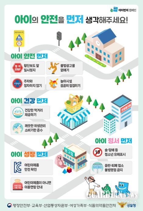 한편, 정부는 새 학기를 맞아 ‘전국 초등학교 주변 위해 요소 관계기관 합동 점검’을 실시하고 있으며, 어린이 안전을 최우선으로 생각하는 안전 문화 정착을 위해 ‘아이먼저’ 캠페인도 확대 시행한다.
