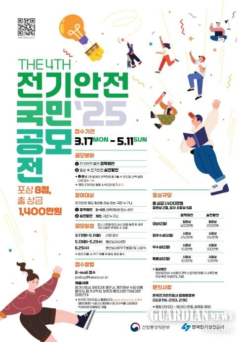 가디언뉴스 백승진 기자 | 산업통상자원부는 3월 17일부터 5월 11일까지 국민이 생각하는 전기안전 제도발굴을 위해 ‘제4회 전기안전 국민 공모전’을 진행한다.