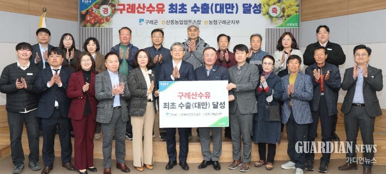 가디언뉴스 김기홍 기자 | 전남 구례군은 지난 4월 1일 구례군 산동농협에서 김순호 구례군수와 허재근 산동농협 조합장, 송해경 농협은행구례군지부 지부장, 산수유 재배 농가 등이 참석한 가운데, 구례 산수유 수출 기념행사를 가졌다고 밝혔다.