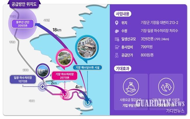 가디언뉴스 김기홍 기자 | 부산시는 동부산 산단의 기업 부담 경감을 위해 기장 해수담수화시설을 활용한 '동부산 산업단지 공업용수 공급방안'을 마련했다고 밝혔다.