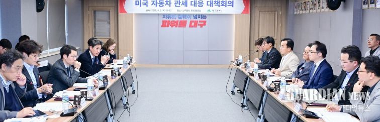 가디언뉴스 김기홍 기자 | 대구광역시는 3일 오전부터 시행된 미국 자동차 관세에 따른 지역 자동차 관련 기업들의 통상위기 극복을 위해 3일 오후 3시 산격청사 제1대회의실에서 자동차 관련 기관과의 대책회의를 열고, 5월 초에 ‘유관기관 통합 수출 설명회’를 개최하기로 의견을 모았다.