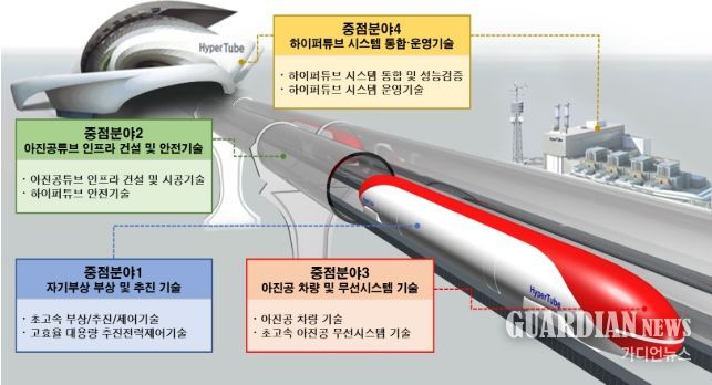 가디언뉴스 김기홍 기자 | 정부가 올해를 K-하이퍼튜브의 원년으로 삼고, 철로 위 비행기, 하이퍼튜브 열차의 핵심기술 연구개발에 본격적으로 나선다.
