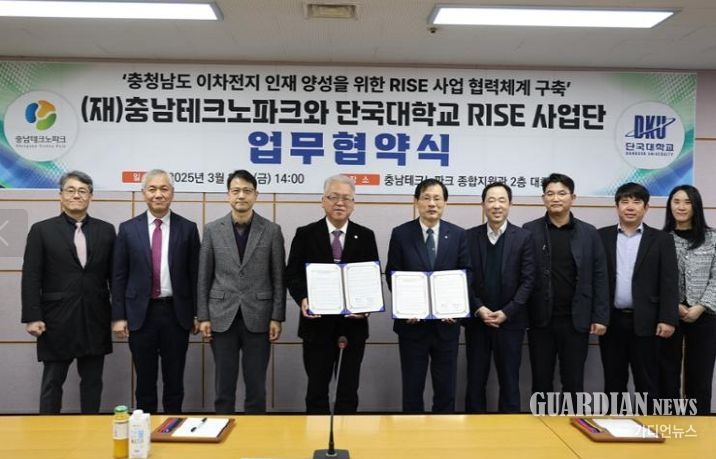 가디언뉴스 김기홍 기자 | (재)충남테크노파크가 지역혁신중심 대학지원체계(RISE) 사업의 성공적인 추진을 위해 도내 주요 대학인 건양대학교, 공주대학교, 단국대학교, 백석대학교, 선문대학교, 호서대학교와 상호 업무협약을 체결하며 지역 혁신성장의 구심점 역할을 강화하고 있다.