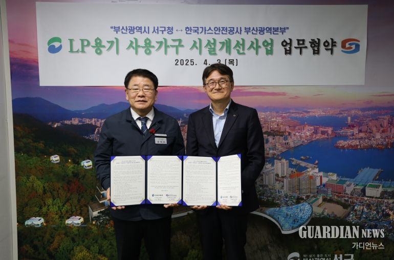 가디언뉴스 김기홍 기자 | 부산 서구는 3일 한국가스안전공사 부산광역본부와 ‘LP 용기 사용 가구 시설 개선 사업 업무협약’을 체결하면서 LPG 가스 배관 정비 및 안전시설 설치 등을 통해 가스 누출, 화재 사고 예방으로 ‘딱 살기 좋은 도시 서구’를 본격화한다고 밝혔다.