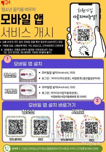 가디언뉴스 김기홍 기자 | 고성군은 최근 청소년 꿈키움 바우처 카드의 모바일 결제 서비스를 지원한다고 4월 17일 밝혔다