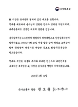 국가보훈부 권오을 장관, 이상웅 참전용사 별세에 조전 '호국영웅 영원히 기억할 것'