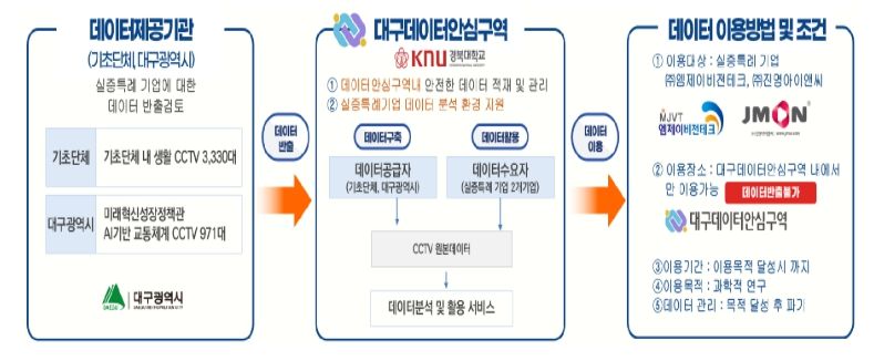 아울러 ‘데이터안심구역 기반 지자체 폐쇄회로 텔레비전(CCTV) 원본 데이터 활용 규제 유예제도(규제샌드박스) 실증 특례’를 통해 대구시 등에서 수집한 폐쇄회로 텔레비전(CCTV) 영상 원본데이터를 대구데이터안심구역에 개방하고, 관련 기업이 고성능 인공지능 모델 개발을 위한 학습 데이터로 활용할 수 있도록 할 예정이다.