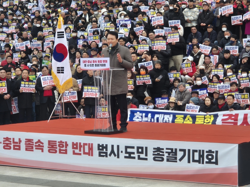 지난 2월 4일 오후, 국회 본관 앞 광장에서는 ‘대전·충남 행정통합안 반대 집회’가 개최됐다. 금방이라도 비가 쏟아질 듯 흐리고 쌀쌀한 궂은 날씨였지만, 대전과 충남 전역에서 버스를 나눠 타고 상경한 약 1만 명(주최 측 추산)의 시도민은 “졸속 통합안 절대 수용 불가”를 외치며 여의도를 뒤흔들었다.