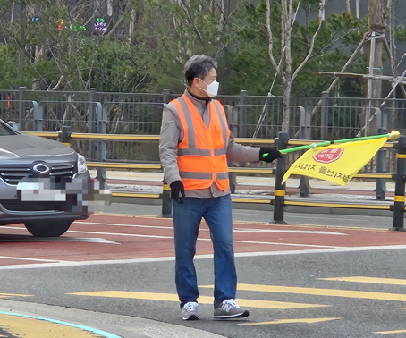 가디언뉴스 김재한 기자 | 매주 화요일,목요일 아침 8시, 대전 유성구 복용초등학교 앞 건널목에는 어김없이 노란색 호루라기 소리가 울려 퍼진다. 출근길 차량이 쉴 새 없이 밀려드는 위험천만한 등굣길, 아이들의 안전을 위해 묵묵히 깃발을 든 주인공은 이 학교 학부모도, 녹색어머니회 회원도 아닌 평범한 아파트 주민 B씨다.