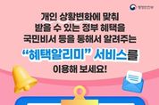 가디언뉴스 허요셉 기자 | 개인 상황변화에 맞춰 받을 수 있는 정부 혜택을 국민비서 등을 통해서 알려주는 "혜택알리미" 서비스를 이용해 보세요! · 알림 대상 혜택 행정·공공기관이 제공하는 모든 공공서비스(6,000여종) · 이용 대상 국민 누구나(*만 14세 미만 제외) · 이용 방법 ① 정부24 접속 ② 혜택알리미 가입·이용 *다음 페이지 참고 ■ 혜택알리미 이용 동의 방법 ① 정부24 웹페이지 또는 정부24 어플을 통해 접속해 주세요. ■ 혜택알리미 이용 동의 방법 ② 모바일에선 정부24 하단에 "혜택알림"을 통해 바로 접속 가능해요. ■ 혜택알리미 이용 동의 방법 ③ 동의 후 맞춤 혜택 알림 받기를 클릭해주세요. 본인인증 이후 이용동의를 진행해 주세요. ■ 혜택알리미 이용 동의 방법 ④ 정부24 회원가입 시 혜택알리미 서비스 이용동의를 선택해 주세요. - 혜택알리미 이용약관에 동의하면, 맞춤혜택 알림 등 다양한 서비스를 제공받을 수 있어요! ■ 혜택알리미 이용 동의 방법 ⑤ 회원가입을 위한 회원 정보를 입력하고 간편인증을 진행해 주세요. -