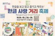 가디언뉴스 허요셉 기자 | 세종시문화관광재단은 오는 10월 18일부터 26일까지 한솔동 한글사랑거리(첫마을 정류장 인근) 일원에서 ‘한글 사랑거리 축제’를 개최한다. 이번 축제는 한글문화도시 세종의 상징공간인 ‘한글 사랑거리’를 중심으로 시민이 한글을 보고, 읽고, 즐기며 한글문화의 가치를 체험하는 문화축제로 마련됐다. 특히 한국영상대학교, 한솔동 상인회 등 지역기관이 함께 참여해 한글문화를 지역상권과 연결하고 세종만의 한글문화 네트워크를 확장할 전망이다. 행사는 10월 18~19일과 24~26일, 총 5일간 진행되며, ‘읽고·보고·즐기고·채우는’ 네 가지 주제를 중심으로 전시·공연·체험·먹거리가 어우러진 다채로운 프로그램으로 시민들을 맞이한다. 먼저 한글을 ‘읽고’ 즐길 수 있는 테마에서는, 한글 이야기 공모전 선정작 5편과 삽화·캐릭터 디지털 감상, 거리에서 펼쳐지는 자율 독서로 한글의 즐거움을 느껴볼 수 있다. 거리 곳곳에서는 시민들이 ‘보고’ 즐길 수 있는 다양한 공연이 이어진다. 18일에는 한글 컬러마임 퍼포먼스(13시), 세종거리예술가 공연(17시)이 펼쳐지고 19일·25일·26일에는 한