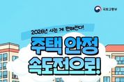 가디언뉴스 허요셉 기자 | 2026년 사는 게 편해진다! 주택 안정 속도전으로! ■ 수도권 공급 속도 UP! 2026년, 공급체감도를 획기적으로 높입니다. · 공공택지 착공 확대 수도권 공공택지에서 5만 호 이상 착공 목표 · 3기 신도시 최초 입주 인천계양을 시작으로 3기 신도시 입주가 최초로 시작 · 유휴공간 활용 노후청사, 학교용지 등 유휴공간 복합개발 착공 (~'30년까지 3.5만 호+) ■ 도심 공급 혁신 30년까지 공급 물량 UP! · 도심복합사업 활성화 - 5만 호 착공 목표(~'30년) - 용적률 상향(최대 법적상한 140%) - 일몰제 폐지로 사업 속도 제고 · 민간 정비 촉진 사업 절차 간소화 및 갈등 관리 강화로 최대 3년 단축 효과 ■ 공적 주택 110만 호 이상 공급 임대주택 혁신으로 주거 기본권 보장! · 공급 목표 임기 내 공적 주택 110만 호 이상 공급 · 2026년 공적임대 15.2만 호 공급 목표 · 재고율 목표 OECD 평균(7.1%)을 넘어 10% 달성 목표 ■