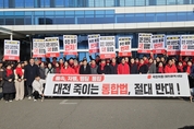 가디언뉴스 김재한 기자 | 대전·충남 행정통합 논의가 가속화되는 가운데, 국민의힘 대전시당이 이를 ‘속도전에 치우친 졸속 추진’으로 규정하고 강력한 비판의 목소리를 냈다. 국민의힘 대전광역시당(위원장 이은권)은 12일 오후 3시, 대전역 서광장에서 당원과 시민들이 대거 참여한 가운데 ‘대전·충남 행정통합 졸속 추진 규탄대회’를 개최했다. 설 명절을 앞두고 열린 이날 집회에서 시당은 현재의 통합 논의가 시민의 동의와 구체적인 재정 설계 없이 진행되고 있다는 점을 정면으로 겨냥했다. 단상에 오른 이은권 시당위원장은 규탄사를 통해 “지금의 통합 논의는 수도권 일극 체제 극복이라는 본질보다 ‘속도’라는 성과에만 매몰되어 있다”며 포문을 열었다. 이 위원장은 “실질적인 재정 지원과 권한 이양이 담보되지 않은 상태에서 ‘선 통합, 후 보완’을 외치는 것은 시민을 기만하는 행위”라며, “구호에 그치는 분권이 아니라 법 조문으로 명확히 명시된 재정 구조와 권한 설계가 선행되어야 한다”고 역설했다. 특히 “시민이 이해하고 판단할 수 있는 수준의 정보 공개와 참여 구조가 마련되지 않는다면, 통합 이후 발생할 혼란은 고스란히 시민의 몫이 될 것”이라고 경고했다. 오후 3시부터