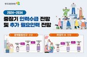 가디언뉴스 김기홍 기자 | 한국고용정보원(원장 이창수)은 '중장기 인력수급 전망'을 통해 향후 10년간 우리나라 노동시장의 인력공급(경제활동인구)과 인력수요(취업자)가 구조적으로 전환되는 양상을 전망하고, 향후 지속적인 성장을 위해 추가로 필요한 인력을 추계했다. 1.중장기 인력수급 전망(2024~2034) 주요 전망 결과를 보면, 15세 이상 인구 증가 폭은 과거에 비해 크게 둔화되고, 경제활동인구는 2030년부터는 본격적인 감소세로 전환될 것으로 나타났다. 저출생·고령화의 영향으로 생산가능인구(15~64세)는 지속적으로 감소하는 반면, 65세 이상 고령층 비중은 2034년 31.7%까지 확대되면서 노동 공급의 구조적 제약이 본격화될 전망이다. 이로 인해 15세 이상 전체 경제활동참가율은 전망 전기(‘24~’29년)에 감소 전환하는 반면, 고령층과 여성의 경제활동참가율은 점진적으로 상승할 것으로 예상되어, 노동시장 내 고령화 심화와 인력 구성의 질적 변화가 동시에 진행될 것으로 보인다. 2024년~2034년까지 취업자 수는 6.4만 명 증가하겠으며, 노동공급 제약의 영향으로 2030