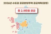 가디언뉴스 김기홍 기자 | 국토교통부와 4개 공공기관은 ’26년 수도권 공공택지에서 총 2.9만호 규모의 공공분양주택을 순차적으로 공급할 계획이라고 밝혔다. 이번 공급 물량은 새정부 「주택공급 확대방안」(9·7대책)에서 발표한 수치(2.7만호) 대비 약 2천호 증가한 규모로, 판교(2.9만호)급 신도시를 하나 새로 조성한 것에 준하는 수준이다. 특히, 4개 공공기관의 올해 분양 물량(2.2만호)보다 32.2% 증가했고, 최근 5년간 평균 수도권 분양 물량(1.2만호)의 약 2.3배 수준으로, 공공 부문의 착공 확대 노력의 성과가 가시화되며, 공급 확대 국면으로 전환되고 있음을 보여준다. 내년에 분양될 단지들을 살펴보면, 지역별로는 △서울 1.3천호, △인천 3.6천호, △경기 23.8천호로 분포되어 있고, 주요 지구별로는 △3기 신도시 7.5천호, △2기 신도시 7.9천호, △기타 중소택지 13.2천호의 공공주택이 분양될 예정이다. 3기 신도시에서는 △고양창릉(3,881호), △남양주왕숙(1,868호), △인천계양(1,290호), 2기 신도시에서는 △광교(600호), △평택고덕(5,134호), △