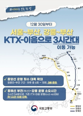 국토교통부, '서울~부산, 강릉~부산', KTX-이음으로 3시간대 이동